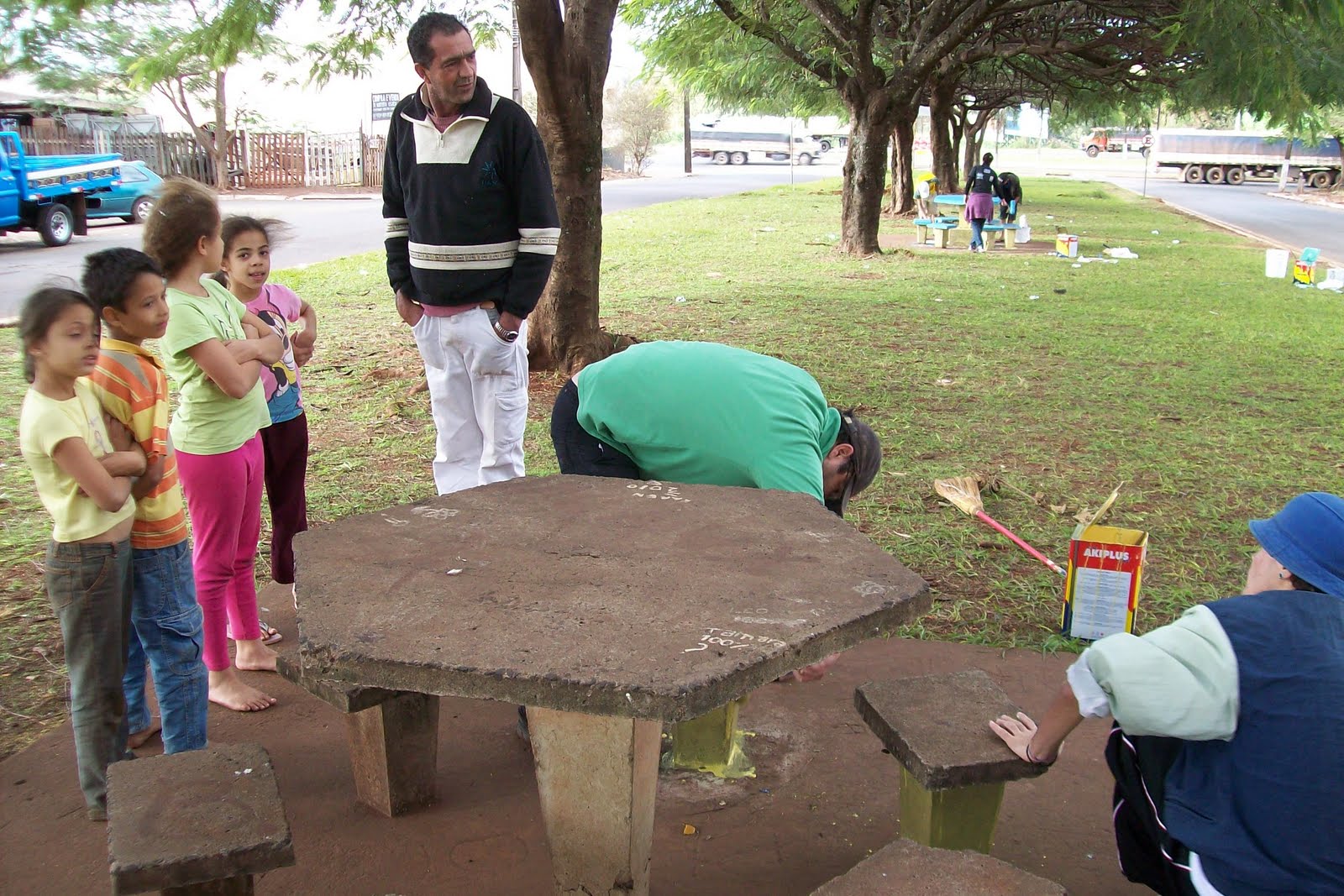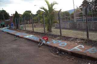 A CUFA-Cambé, em parceria com o programa Atitude do governo do Paraná, deu sua contribuição na pintura de algumas comunidades que formam o Jd. Ana Rosa, nesse último sábado, dia 12 junho. A Cufa-Cambé, além de mobilizar seus integrantes, contribuiu com as tintas nas cores verde, amarelo, azul e branco. Foram iniciadas as pinturas nos bancos da Av. Raminelli do Jd Ana Rosa, na frente da quadra pública do Jd. São Francisco e em algumas esquinas do Jd Tupi. A ação também contou com a colaboração de algumas lideranças comunitárias. As pinturas ainda devem continuar e envolver mais pessoas no decorrer da Copa. Em conversas com os moradores locais, constatou-se que nunca havia ocorrido um tipo de ação parecida. Em contraste com a cinzenta e empoeirada paisagem desses locais, mesmo sendo um trabalho singelo de pintura, começou-se a observar novas cores e uma vista um pouco mais alegre.Portanto, o que pode aparentar uma simples ação de pintura surge como uma atividade pioneira em chamar a atenção para a necessidade de novos cuidados nesses lugares. Por enquanto, a paisagem que teima em se apresentar aos olhares dos moradores ainda é, predominantemente, escura e empoeirada. Mas, um pontapé inicial contra ela foi dado. E a Cufa-Cambé pretende fazer um golaço nesse jogo!